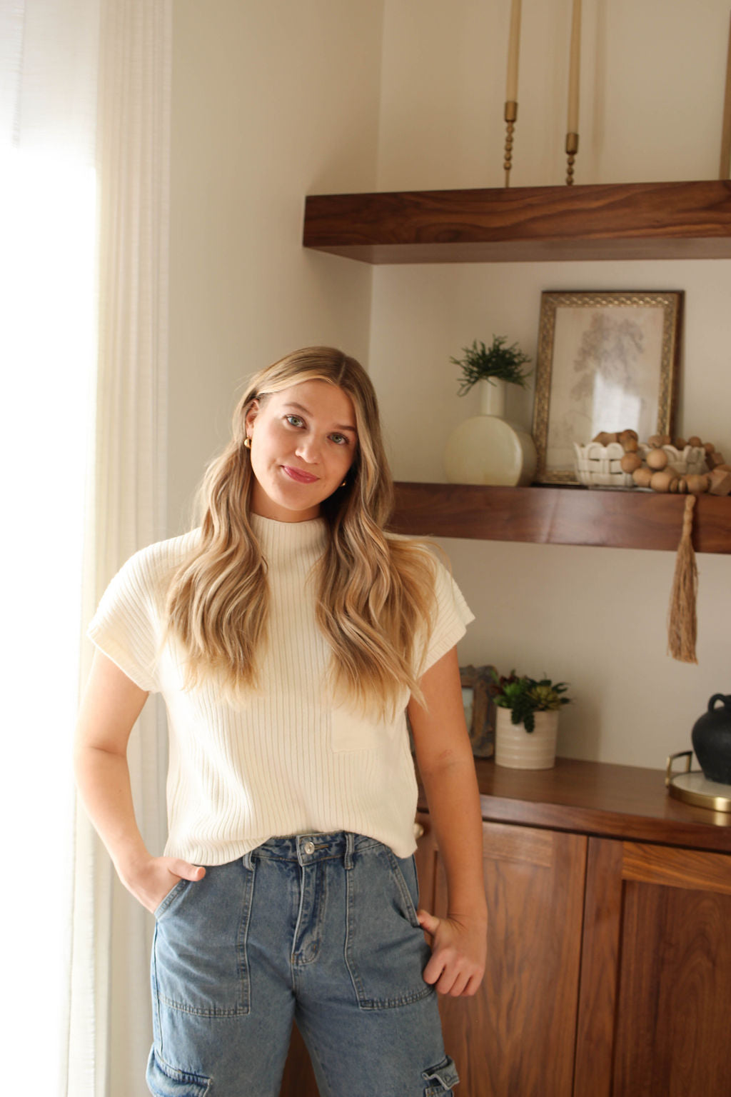 our favorite basic! transition into spring with this classic knit. layers well but pairs great with a variety of pants and skirts. pocket detail, extended shoulder, easy to throw on pullover. see other available colors here.